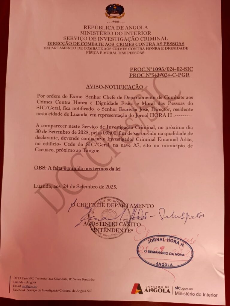 Escrivão José foi ouvido pelo Serviço de Investigação Criminal (SIC) nesta terça-feira, dia 30 de Setembro, enquanto que a jornalista Anna Costa deverá ser ouvida na próxima segunda-feira, 5 de Outubro, também como parte do mesmo processo.