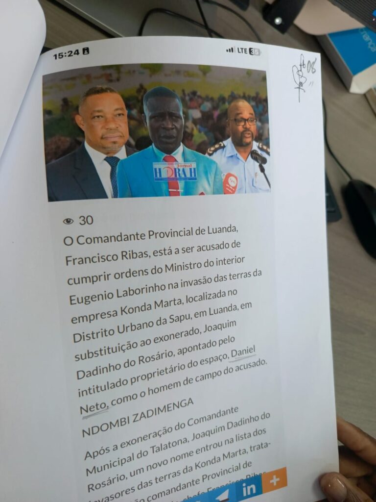 O actual Comandante-Geral da Polícia Nacional de Angola (PNA), Francisco Ribas, acusado de envolvimento na alegada pilhagem de terras pertencentes à empresa Konda Marta, avançou com um processo-crime contra a Direcção do Jornal Hora H, após a publicação de uma matéria que o implicava no caso, enquanto exercia o cargo de Comandante Provincial da Polícia Nacional em Luanda.