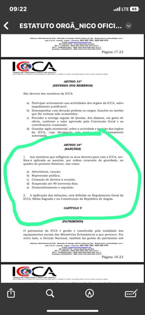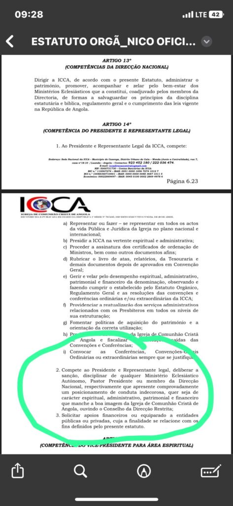 Documentos enviados a Redacção do Jornal Hora H, atestão que a liderança da Igreja de Comunhão Cristã de Angola (ICCA), apresentou na última quinta-feira, 30 de Outubro, uma queixa-crime contra o cidadão Garcia Afonso Tomás, ex-membro e antigo dirigente da instituição religiosa, a quem acusa de abuso de confiança e apropriação indevida de fundos da igreja