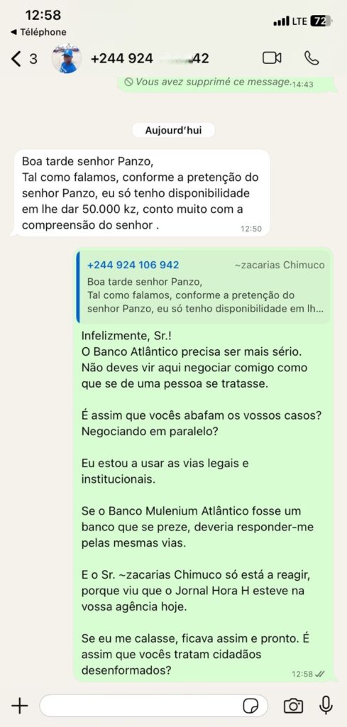 Face aos transtornos, o cliente exigiu uma indemnização de 75.000 kwanzas, justificando perdas salariais por deslocações e faltas ao serviço. Segundo Gimi Panzo, apresentou-se aberto a negociações, mas recebeu como resposta de um funcionário “faça o que quiseres”.