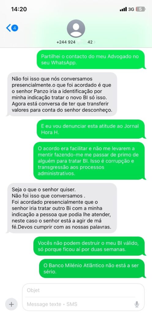 Segundo o denunciante, o processo teve início quando recebeu uma transferência do exterior e foi informado de que, por política interna, o levantamento exigia presença física para preenchimento de documentos e apresentação do BI. Após ser atendido, Gimi Panzo deixou o seu documento no banco, acreditando tratar-se de um procedimento normal, e ausentou-se, segundo contou a este Jornal.