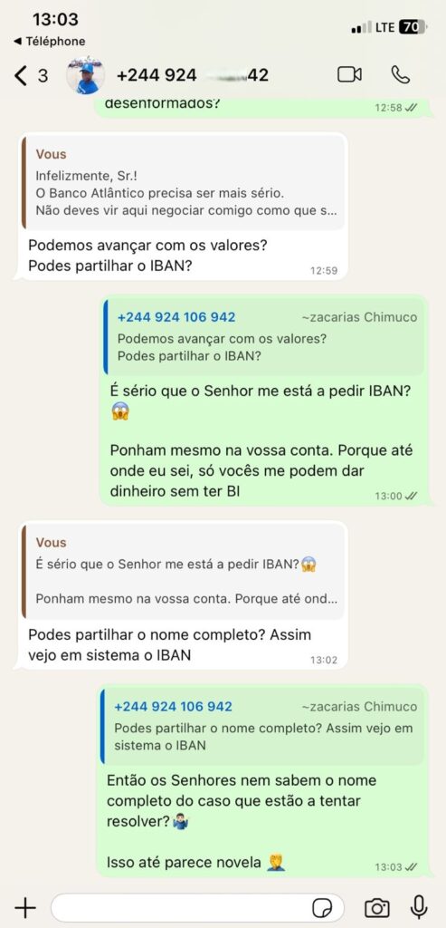 BANCO ATLÂNTICO DESTRÓI BI DO CLIENTE E FICA A DEVER 25 MIL KWANZAS QUE PROMETE PAGAR NO DIA 22